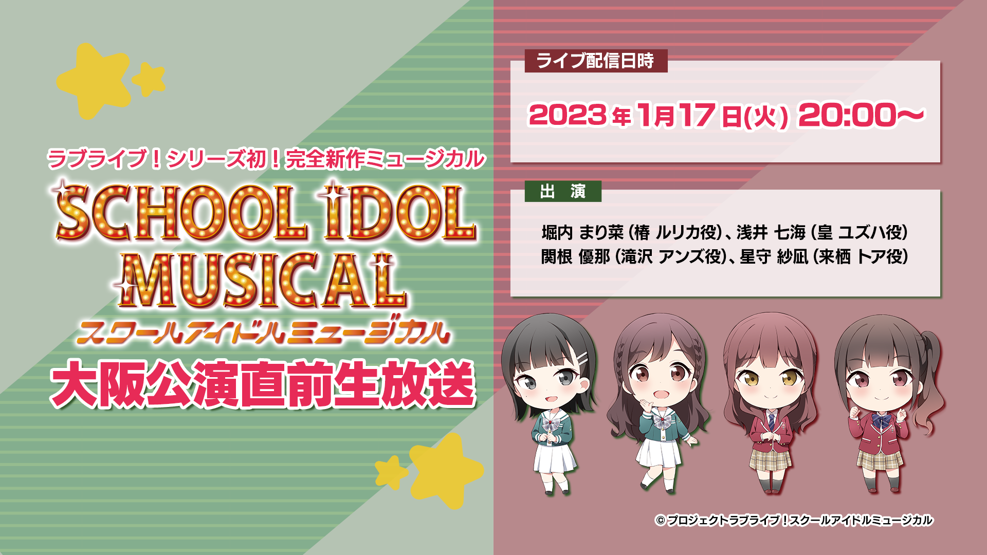 ラブライブ!シリーズ初の完全新作ミュージカル「スクールアイドルミュージカル」のキャストが出演する生放送番組を配信します。