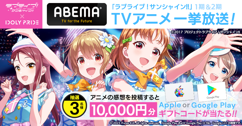 IDOLY PRIDEコラボ 実施記念! ラブライブ!サンシャイン!! TVアニメ1期/2期 ABEMA全話無料一挙放送が決定!